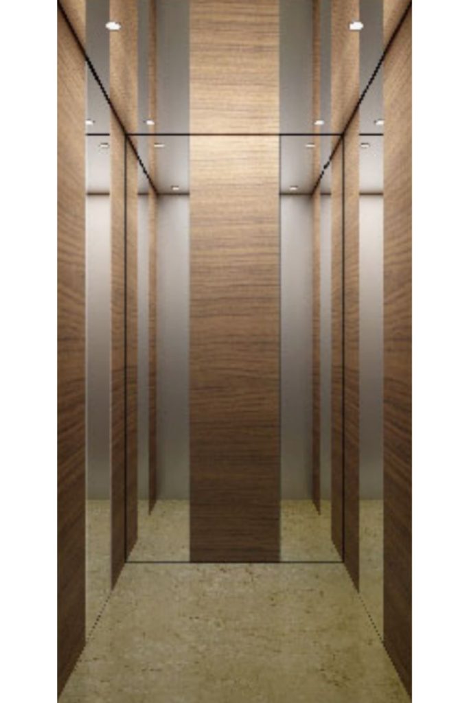 - Car wall and car door: Mirror stainless steel in the Middle, craft wooden facing on the other sides